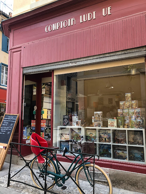 La verdad es que me gustó mucho esta ciudad. Llegamos sobre las 11h de la mañana, primero dimos un paseo por la ciudad, para después adentrarnos en la ciudadela medieval, la Cité. La visita al castillo la teníamos a las 15.50h por lo que antes paramos a comer en un restaurante muy origianal de juegos de mesa. Tomamos un plate du jour, o menú del día, por 13 euros. Elegimos quiche con ensalada y un postre riquísimo, que se llama flan pero no es como el flan típico de huevo.